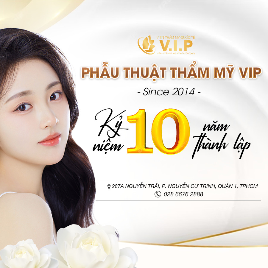 Viện phẫu thuật thẩm mỹ Quốc Tế VIP được thành lập năm 2014, là phòng khám thẩm mỹ chính quy được Sở Y tế TPHCM cấp giấy phép số: 04317/HCM-GPHĐ. Với nhiều năm hoạt động vì mục tiêu giúp khách hàng thăng hạn nhan sắc. VIP sở hữu đội ngũ Y Bác Sĩ xuất sắc, có bằng cấp, chứng chỉ đầy đủ. Trang thiết bị Y tế và kỹ thuật, công nghệ thường xuyên được nâng cấp mới nhất.