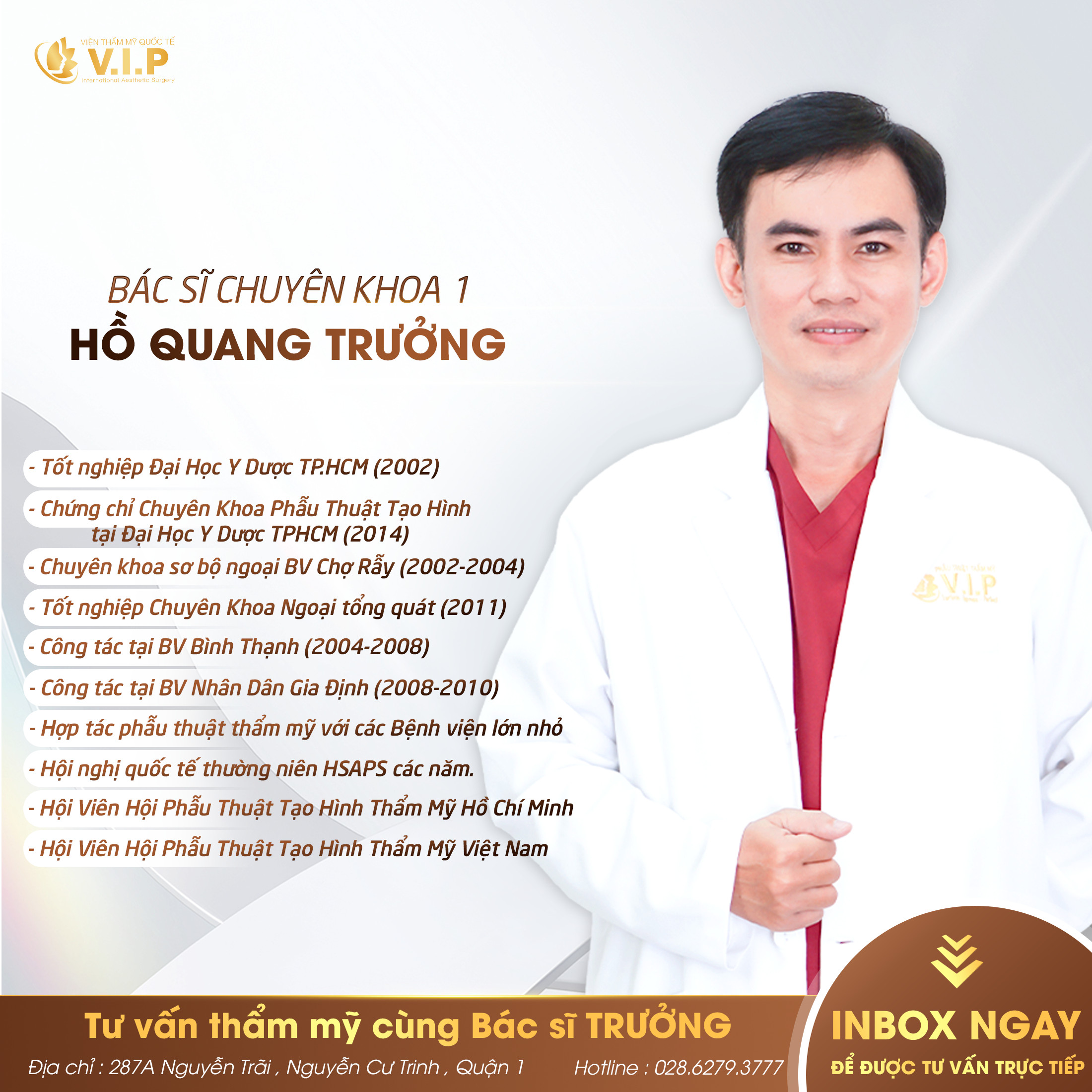 Viện phẫu thuật thẩm mỹ Quốc Tế VIP được thành lập năm 2014, là phòng khám thẩm mỹ chính quy được Sở Y tế TPHCM cấp giấy phép số: 04317/HCM-GPHĐ. Với nhiều năm hoạt động vì mục tiêu giúp khách hàng thăng hạn nhan sắc. VIP sở hữu đội ngũ Y Bác Sĩ xuất sắc, có bằng cấp, chứng chỉ đầy đủ. Trang thiết bị Y tế và kỹ thuật, công nghệ thường xuyên được nâng cấp mới nhất.
